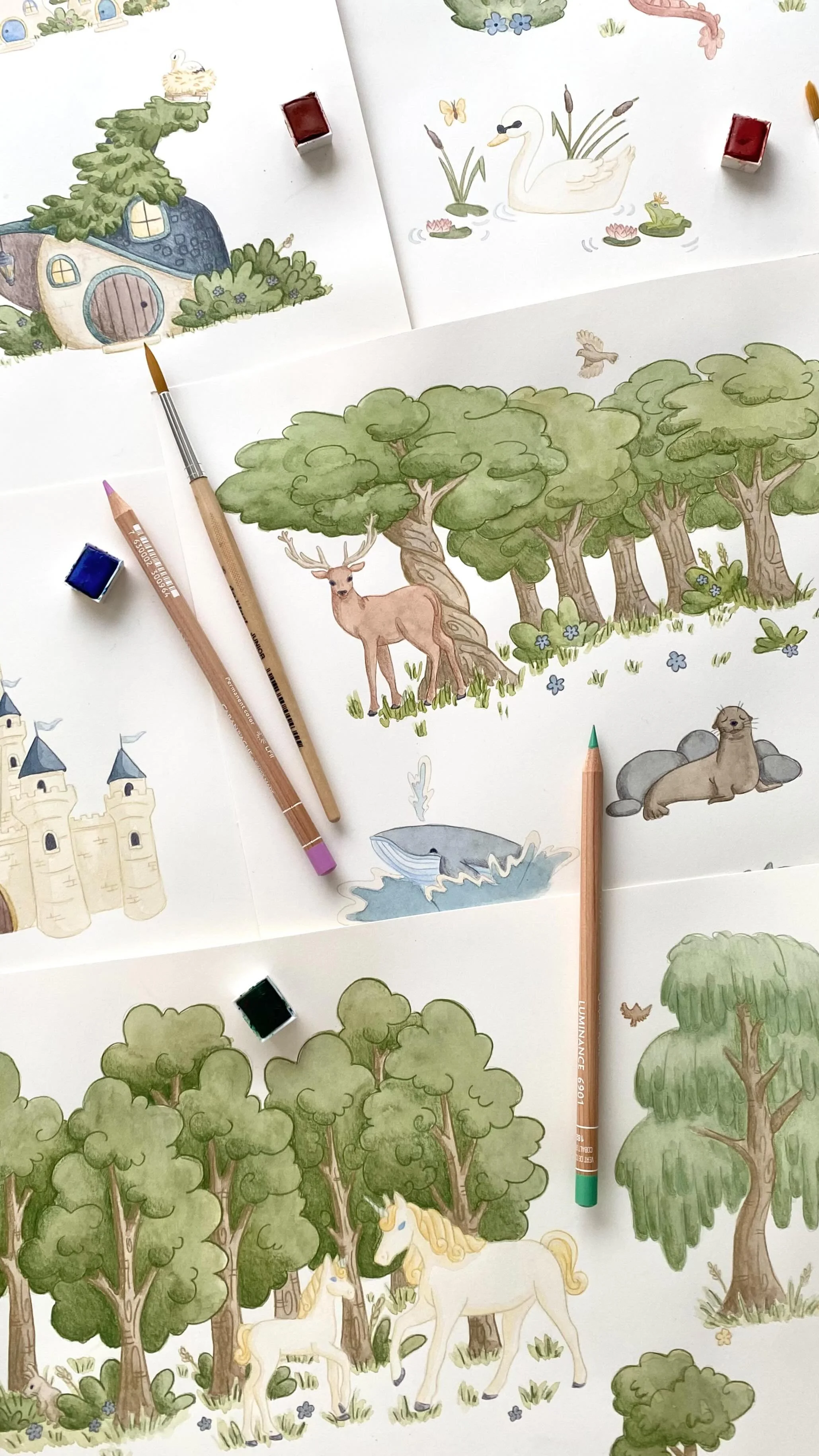 I craft delicate watercolor illustrations and whimsical patterns that capture the magic of childhood and the quiet wonders of the natural world.